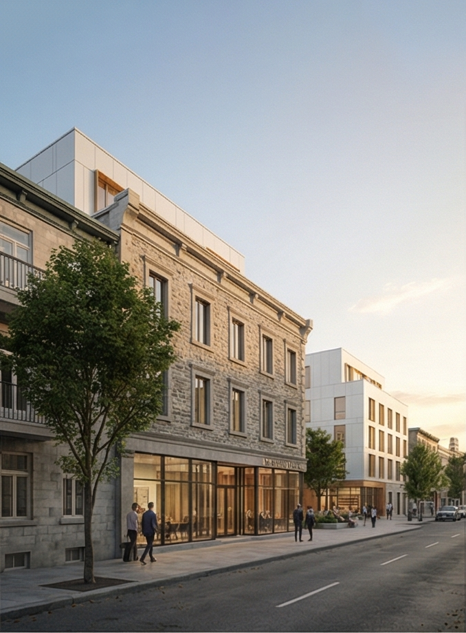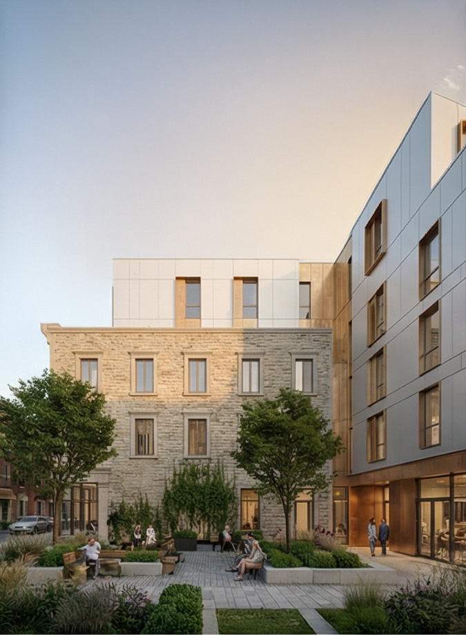 Par cette hybridation, le projet redonne forme à un tissu oublié, densifie avec justes se et ouvre la voieà une requalification des espaces publics environnants, affirmant un milieu devie vivant, intégré et tourné vers l’avenir.
